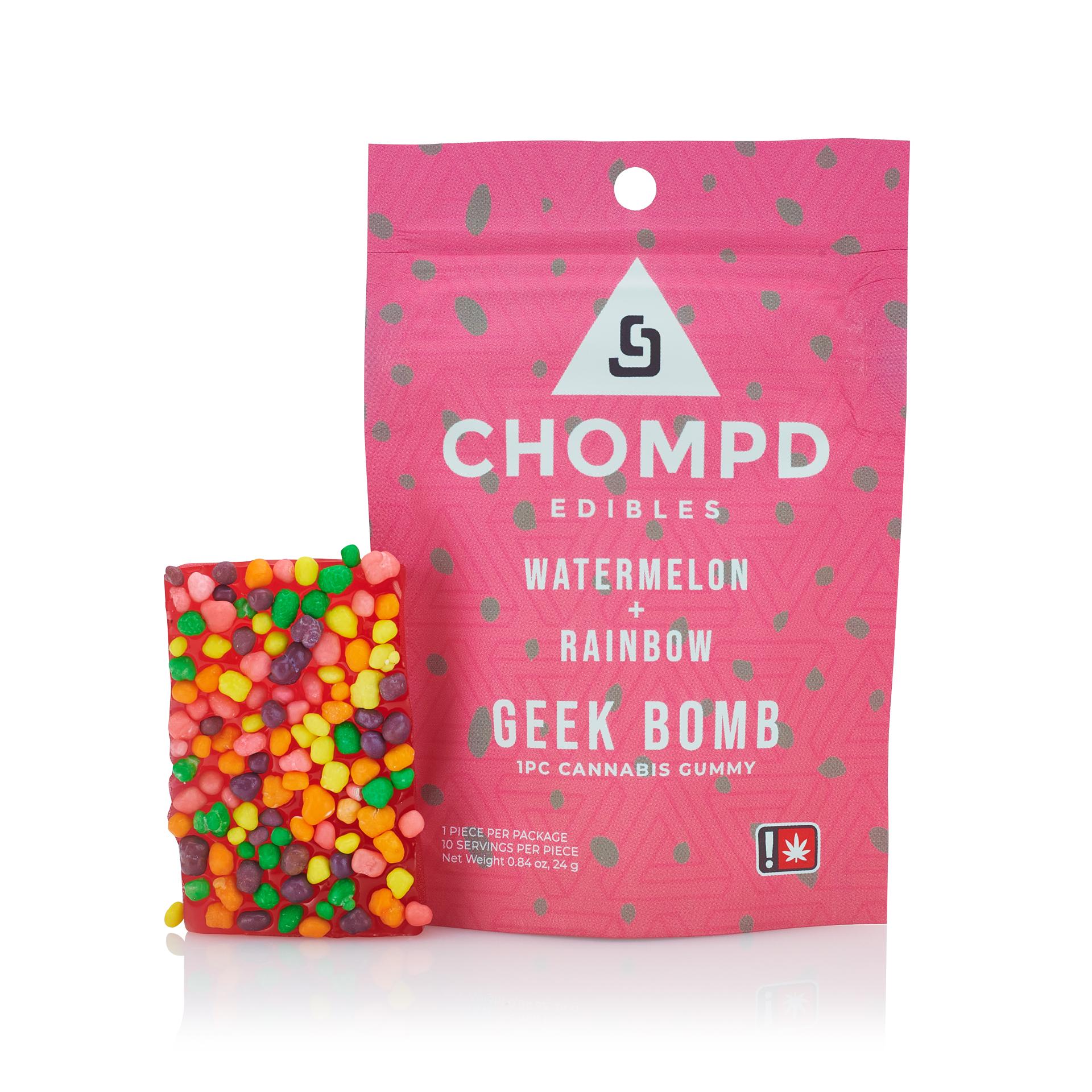 Gummy ~ Chompd ~ Geek Bomb ~ 100mg ~ 10pc ~ Watermelon + Rainbow