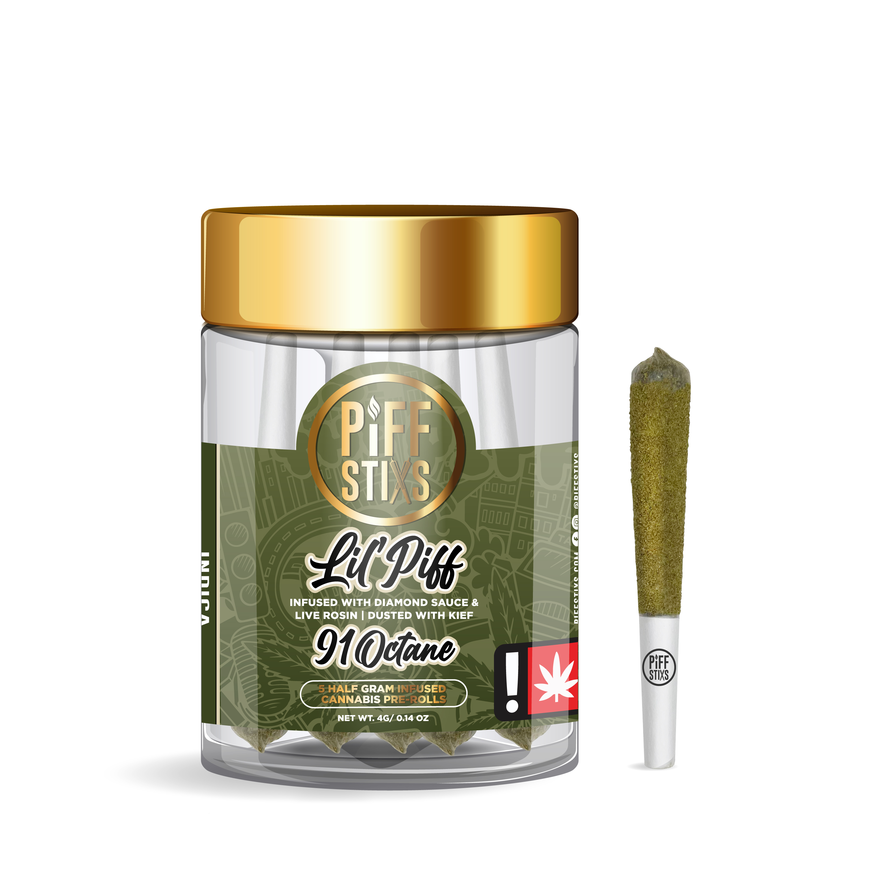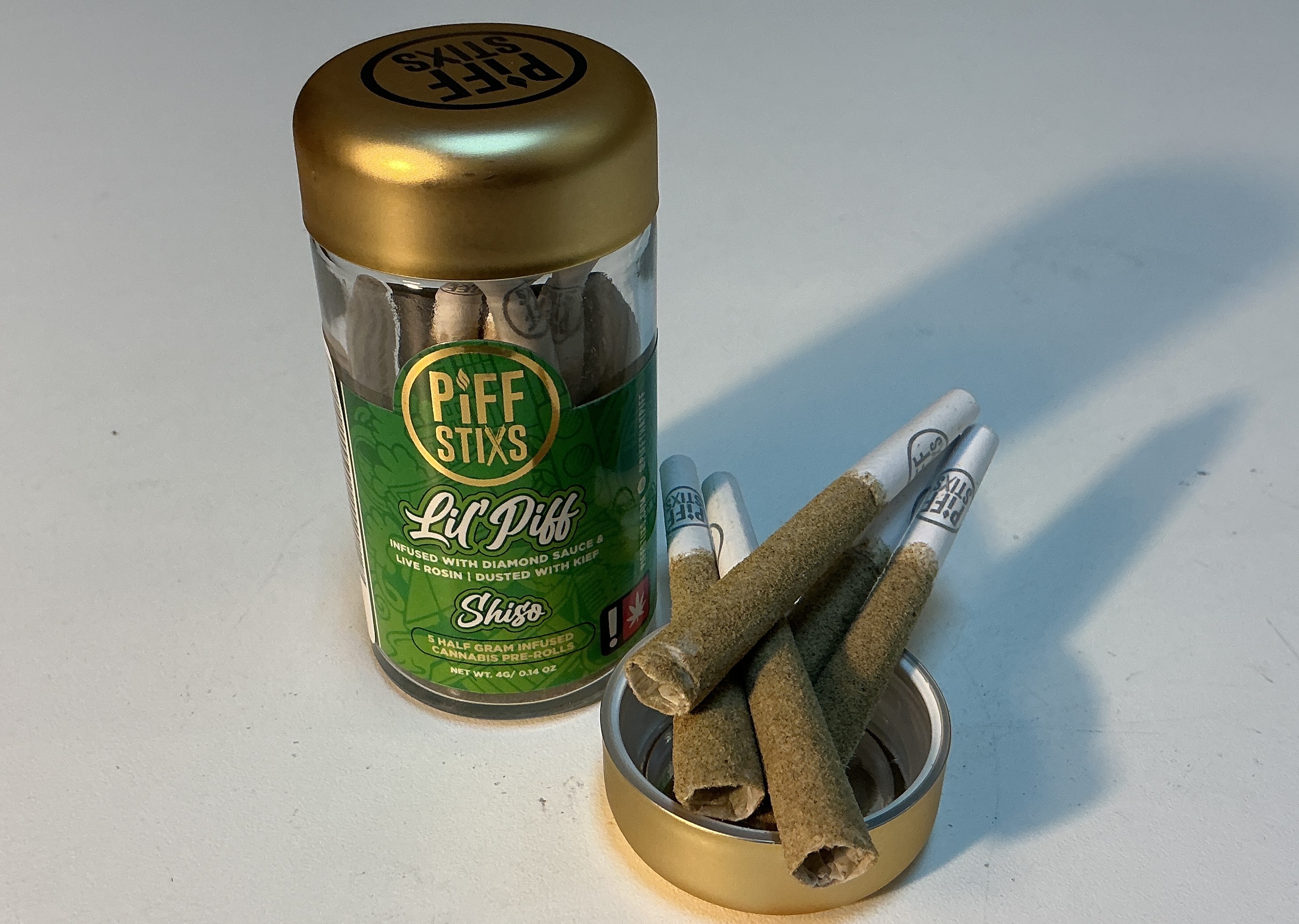 PIFF STIXS | SHISO | .5G DIAMOND/ROSIN/ KEEF INFUSED PRE-ROLL 5 PACK