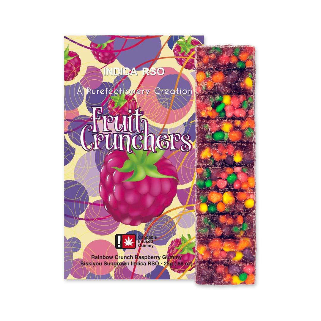 A few products consistently show up across the most locations. Fruit Cruncher - 100mg Rainbow Crunch Raspberry RSO Gummy (3 stores), Fruit Cruncher - 100mg Rainbow Crunch Strawberry RSO Gummy (3 stores), and Fruit Cruncher - 100mg Rainbow Crunch Blueberry RSO Gummy (2 stores).